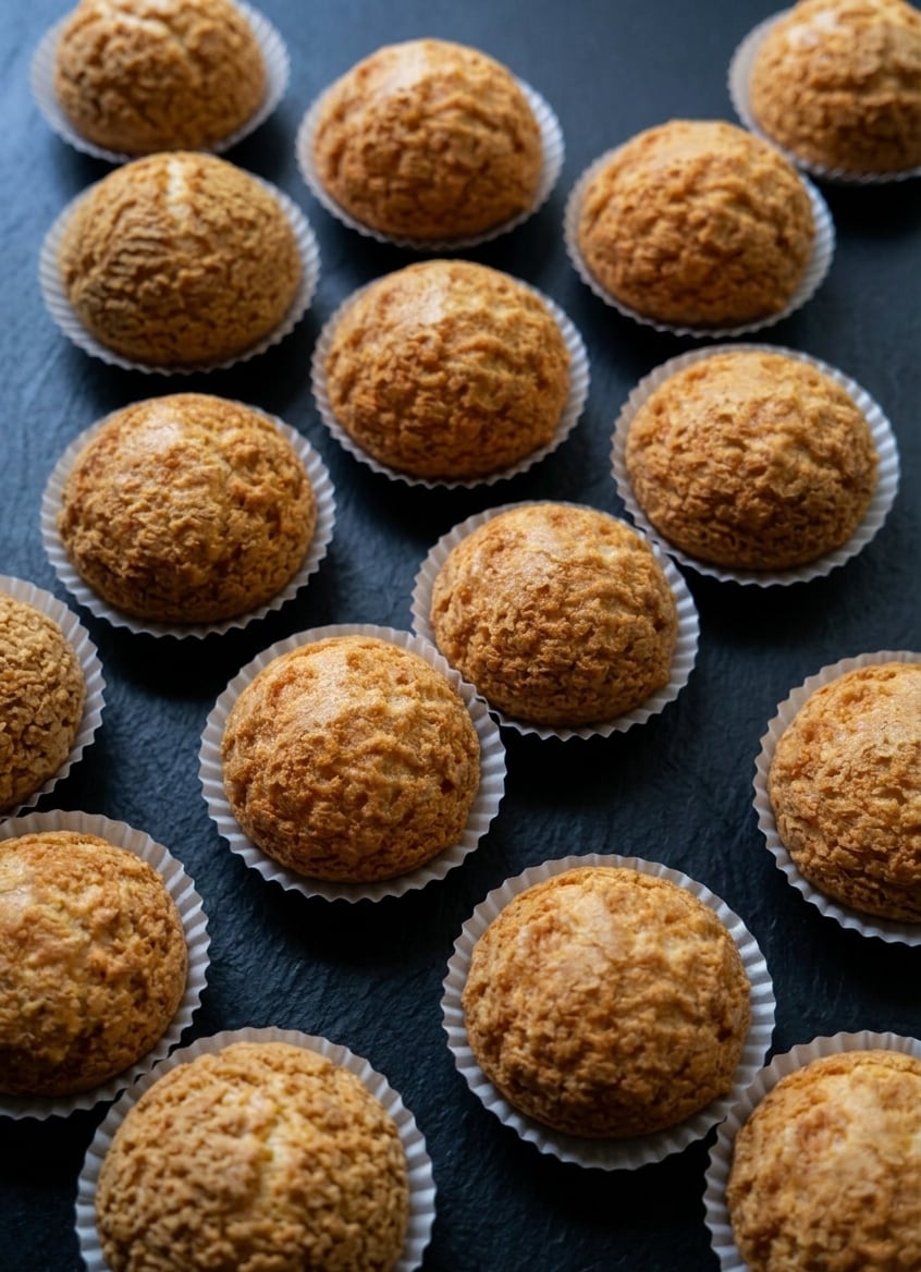 外はサクサクのクッキー生地、中はもちっとしたシュー生地のユニークな食感が特徴。