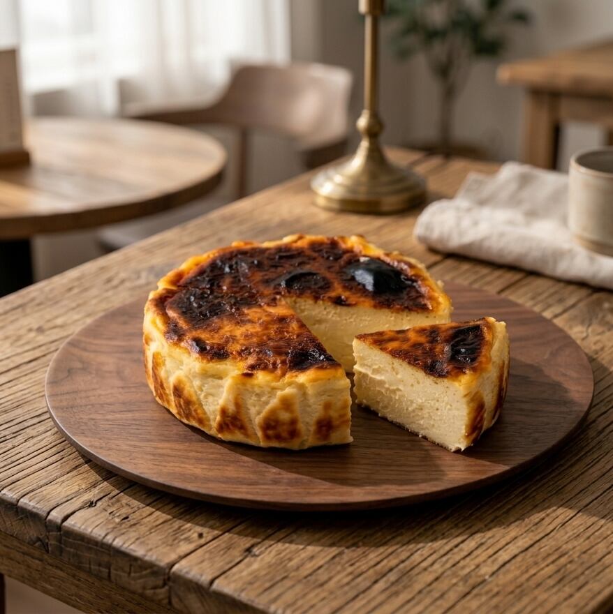 滑らかな食感と濃厚な味わいが自慢のバスクチーズケーキ。